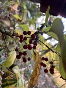 寒くなってくると、ナンテンや万両・千両などまたおめでたい赤い実がお目見えします。