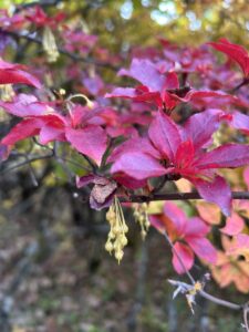 誤って咲いていたミツバツツジ、名に恥じないニシキギ、ドウダンツツジ
