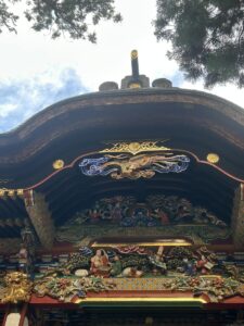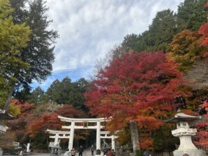 変わった鳥居を抜け、山門、そして本殿に通じます。色鮮やかな彫刻が紅葉とともに目を楽しませてくれました。