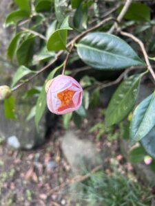一方で、寺院では椿が目に留まった。瑞鳳殿では椿の侘助、瑞鳳寺では椿、瑞巌寺でも椿が静かに咲いていた。