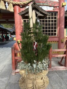 1枚目は仙台の門松らしく、根白石村から材料が献上され門のような形。2枚目は鹽竈神社で見られた。なじみがある門松。3枚目は瑞巌寺で、門松というのか、ホテルにも同じような飾りがあった。わらが数本編みこまれていて、そこにめざしや昆布が刺してある。ゴボウ締めと言われる種類で細く長く続くようにという祈りが込められているそう。