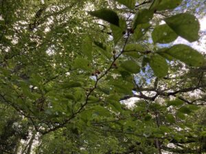 探すポイントは、「下を向いて歩くこと」。坂本キューとは逆ですが、下を向いて探していると、赤い実が目に入ります。そして目を凝らしてその真上や横にある樹木を観察するのです。