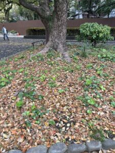 この写真は秋ではなく、3月下旬の日比谷公園のクスノキの下です。常緑でも循環していることが分かりますね。