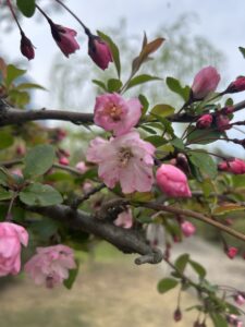 上を見れば、枝に咲く花。
