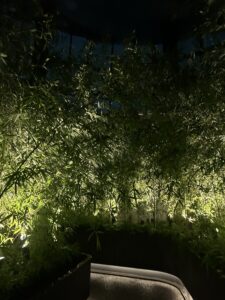 その香りが植栽の緑と混ざり合い、“植物園ではないのに植物を感じる”空間をつくっていました。